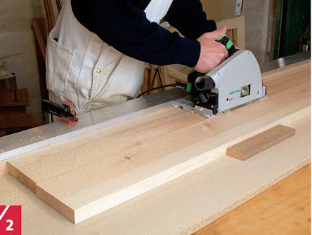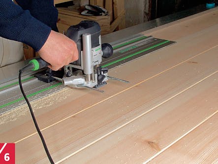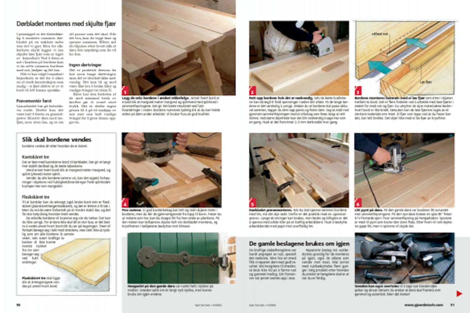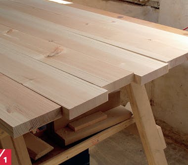 Rett opp bordene hvis det er nødvendig. Selv de beste kvalitetene kan slå seg litt fordi spenninger i veden blir utløst. På de lange bordene er det vanskelig å unngå. Ønsker du at bordene skal passe akkurat sammen, legger du dem opp parvis og fester dem. Sag så midt ned gjennom sammenføyningen med ei sirkelsag som føres langs ei rett skinne.