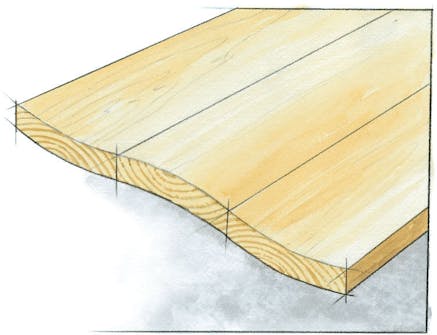 Vender du alle bordene samme vei, kan det oppstå forhøy-ninger i skjøtene ved fuktighetsforandringer fordi splintsiden krymper mer enn margsiden.