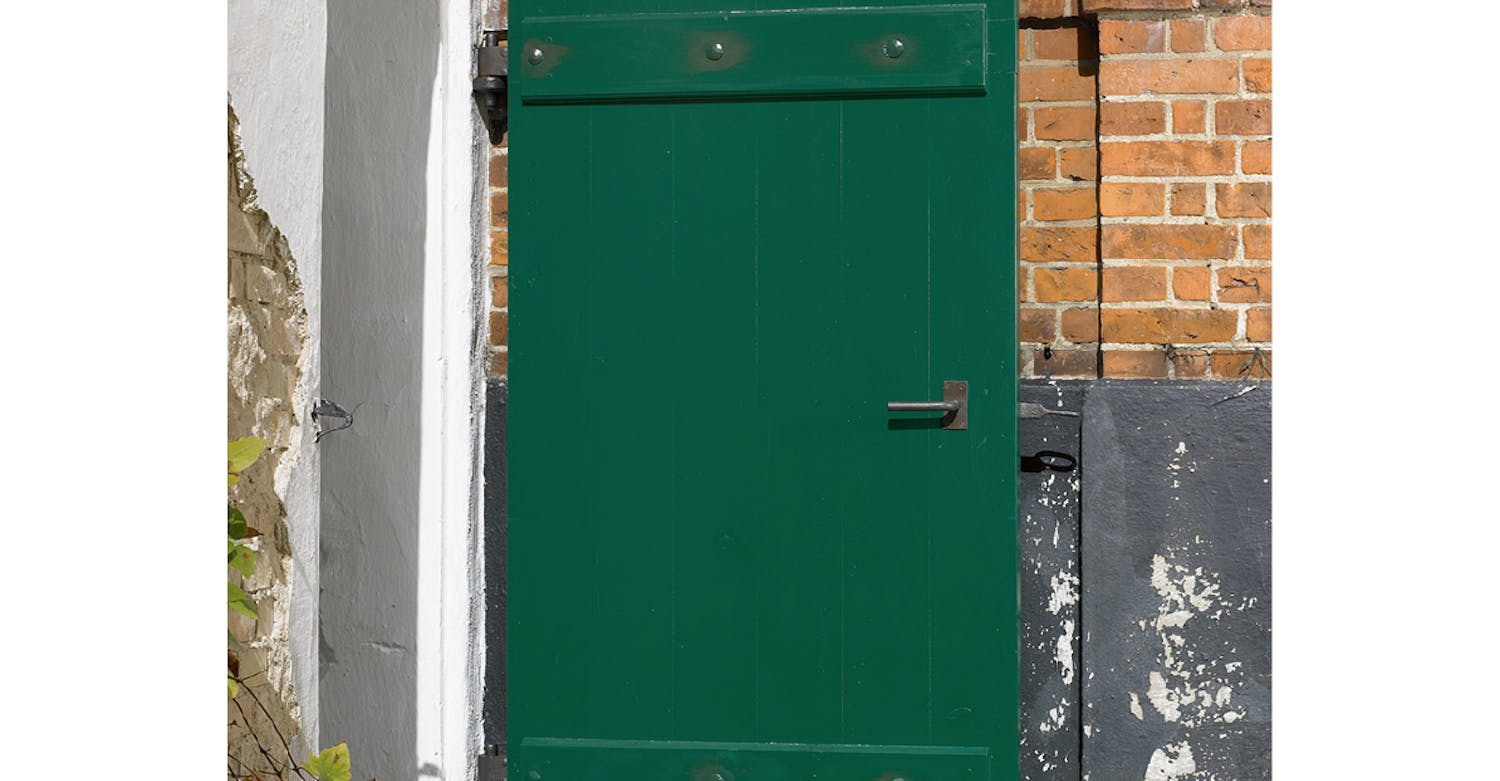 Sag til ei beskyttende dryppnese av kjerneveden fra ett av bordene som ble til overs. Fres en dryppkant på undersiden, og montér den nederst på dørbladet på den siden som er mest utsatt for regn.