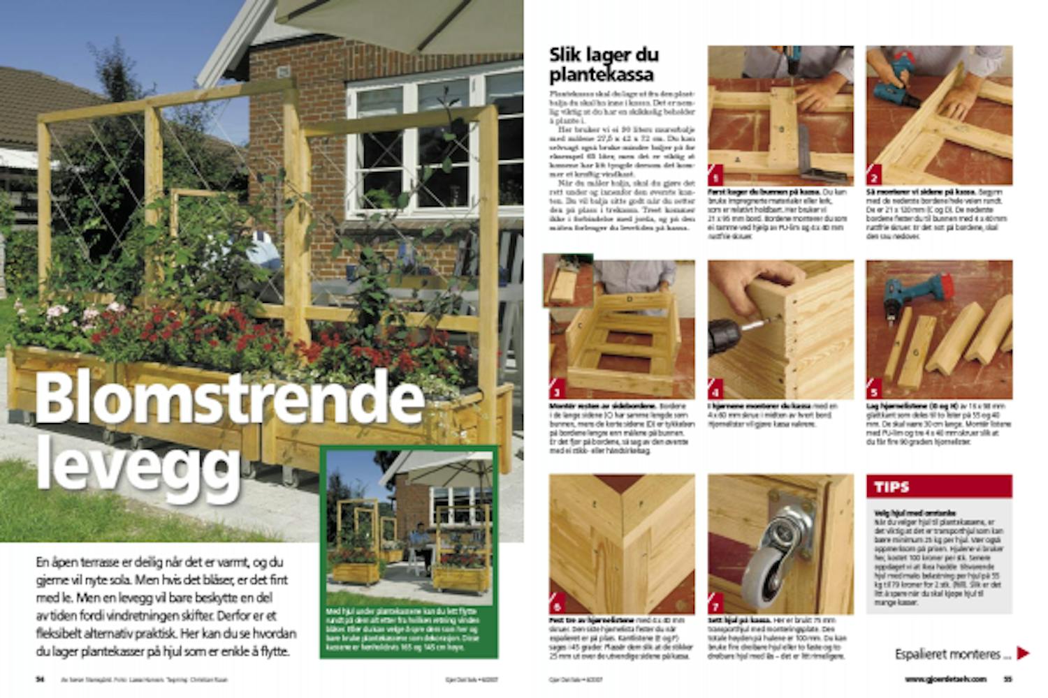 Fordi hensikten med espalieret er at det skal beskytte mot vinden, bør du plante ei klatreplante. Etter hvert som den vokser til, vil den dekke espalieret og sørge for le - og privatliv - på den åpne terrassen.