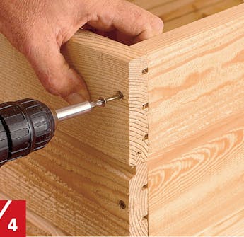 I hjørnene monterer du kassa med en 4 x 60 mm skrue i midten av hvert bord. Hjørnelister vil gjøre kassa vakrere.