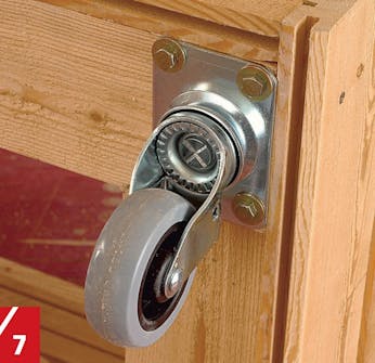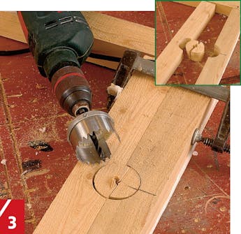 Sag et hakk på innsiden av beina til ramma. Det er nødvendig for at den kan gå inn over kantlistene på kassa. Du kan for eksempel spenne fast ei hjelpelist til ramma og sage ett hull med ei hullsag. Har du ikke det, kan ei stikksag også klare oppgaven.