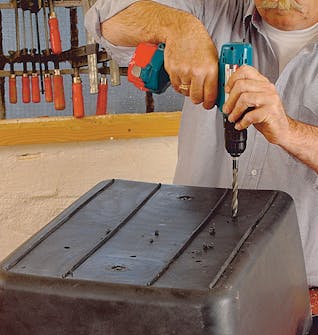 Det er viktig å utstyre balja med dreneringshull før du planter den til. De færreste planter liker at røttene står konstant i vann. 10 mm hull i hver langside av bunnen av balja passer godt.