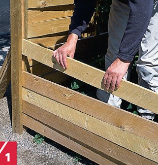 Du kan lett variere høyden på gjerdet både opp og ned. Det viktigste er at bordene i de enkelte seksjonene flukter og flettes skiftevis inn og ut.