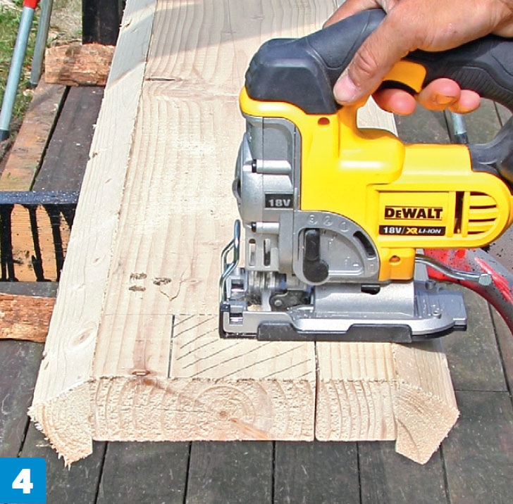 Innsnittene til stolpene lages. Skjær ut snittene med en stikksag, etter merkene du tidligere har tegnet opp.