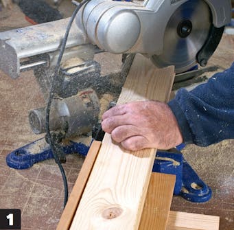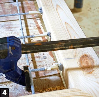 Press sammen skjøtene med en skrutvinge. Da blir de både tette og pene. Skru 2 stk. 5 x 100 mm skruer i hvert hjørne. Skru sammen delene så hardt at limet pipler ut i sammenføyningene.