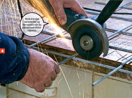 Merk opp til nettet på innsiden. Tidligere tegnet vi opp til armeringsnettet på den brede siden. Nå flytter vi målet til innsiden, der vi skal bore. Bruk en tømrervinkel.