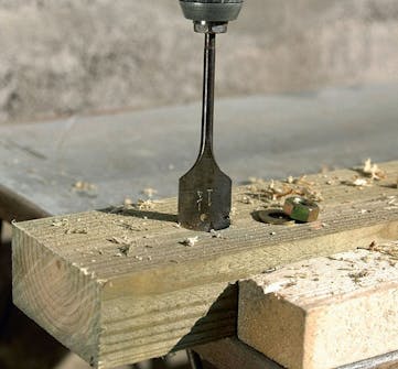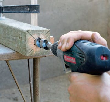Merk opp midten i bunnen av stolpen, og bor et 20 cm dypt hull med et spiralbor som passer til diameteren på røret. Det er viktig at hullet er vinkelrett på enden av stolpen.