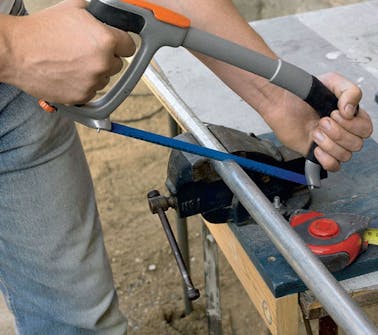 Del opp det galvaniserte røret i lengder á 42 cm. Da kan røret gå 20 cm ned i betongen og 20 cm opp i stolpen, samtidig som det fortsatt vil være et par centimeter luft mellom stolpen og betongen.