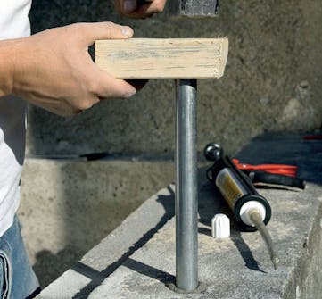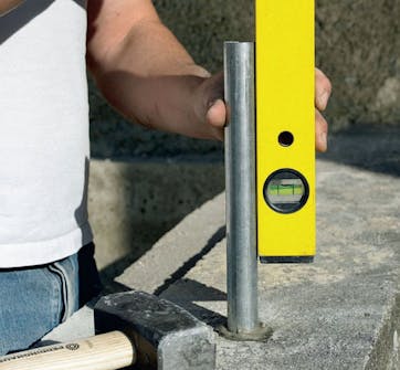 Røret kan du rette opp med små slag med en sleggehammer hvis det ikke står helt i lodd når klebemassen er herdet.