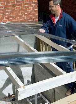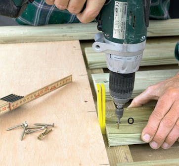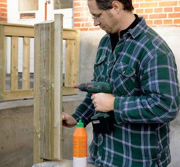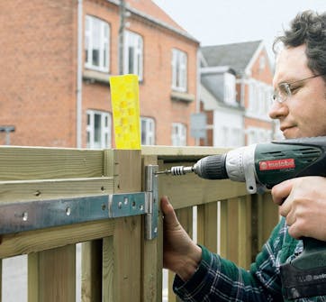 Fest monteringslistene med PU-lim (polyuretan), og skru dem fast på siden av stolpene. Legg merke til at lista stikker opp over stolpen.