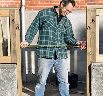 Begynn med å måle åpningen der porten skal sitte. Porten lages slik at det er minimum 5 mm luft på begge sider og et par centimeter nede.