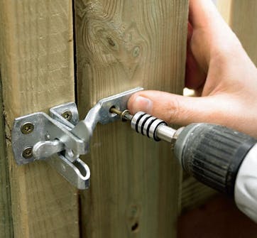 På den motsatte siden monterer du en grindlås. Gjerdet er så åpent at du kan stikke hånden gjennom det og åpne porten utenfra.