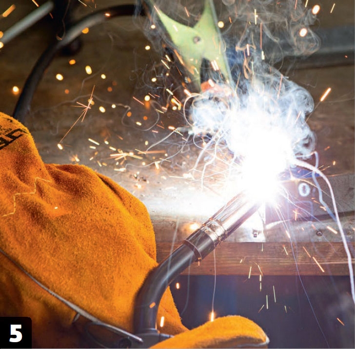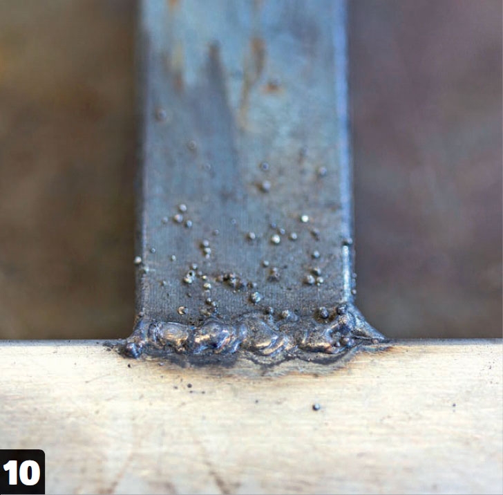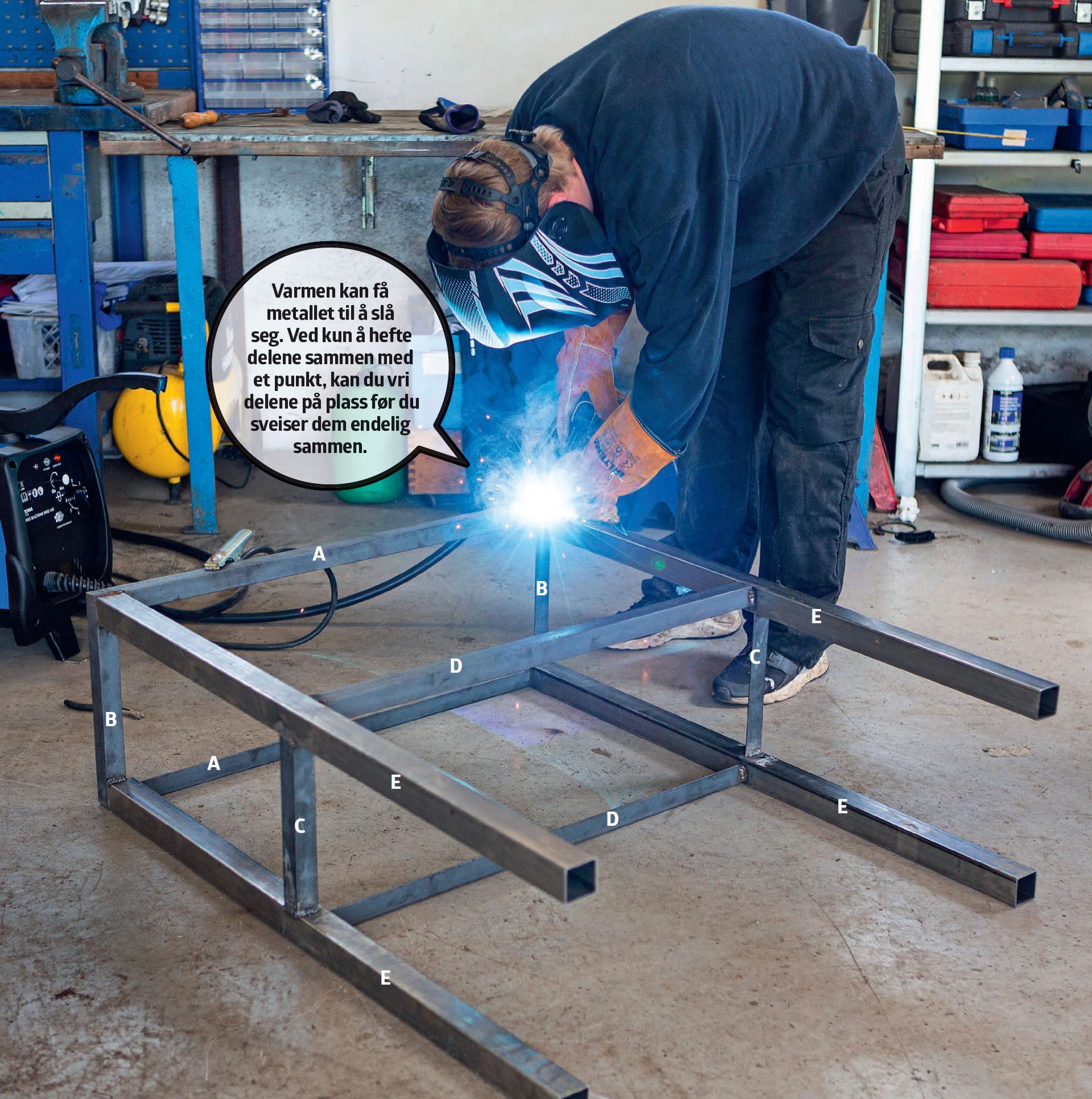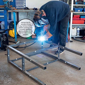 Vær oppmerksom på at varmen fra sveisingen kan få metallet til å vri seg. Gå derfor langsomt frem, og sjekk at alt er i vinkel underveis. Hvis metallet slår seg, må du vri det tilbake i form.