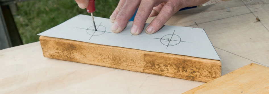 Lag to maler, en til hver side av beina. Skruene må nemlig forskyves med cirka 2 cm for å unngå at beina sprekker. Merk opp på alle skjøtestykkene.