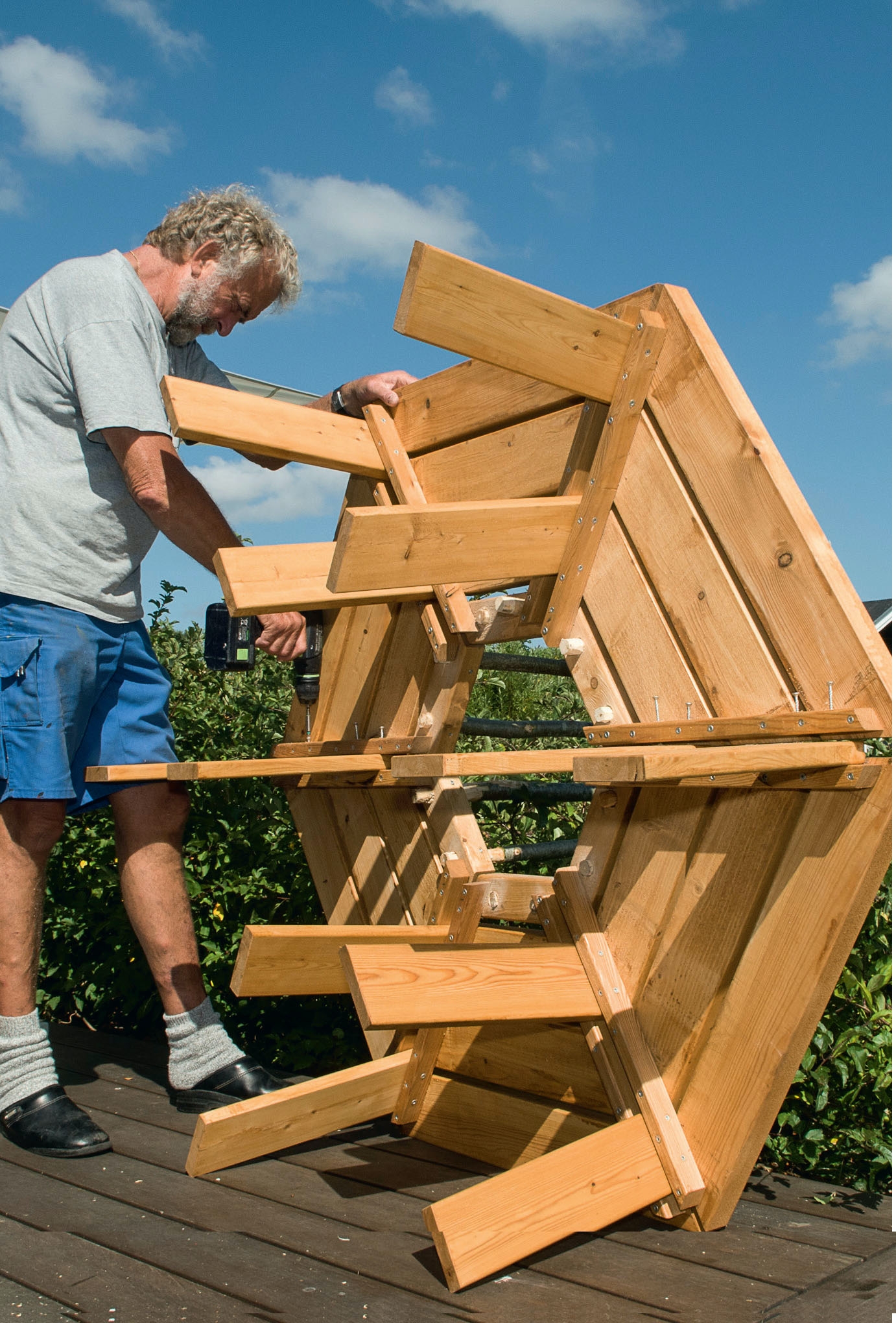 Benken blir holdt sammen av fire skruer, slik at du enkelt kan adskille den når den skal ha trebeskyttelse eller kanskje pakkes ned for vinteren.