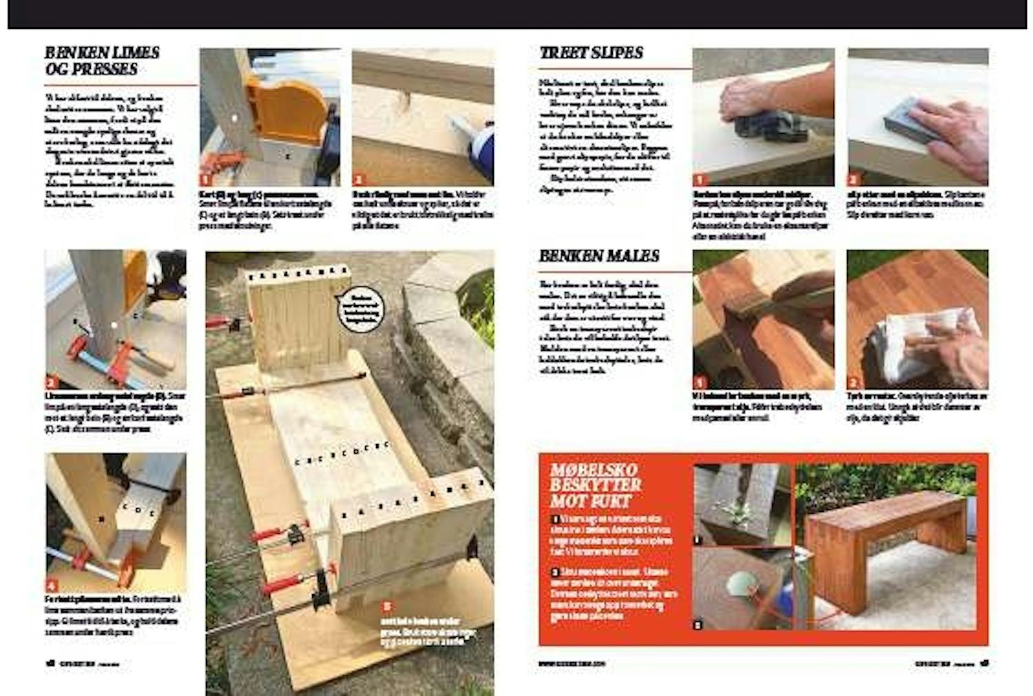 Fortsett på samme måte. Fortsett med å lime sammen benken ut fra samme prinsipp. Gi limet tid til å tørke, og hold delene sammen under hardt press.