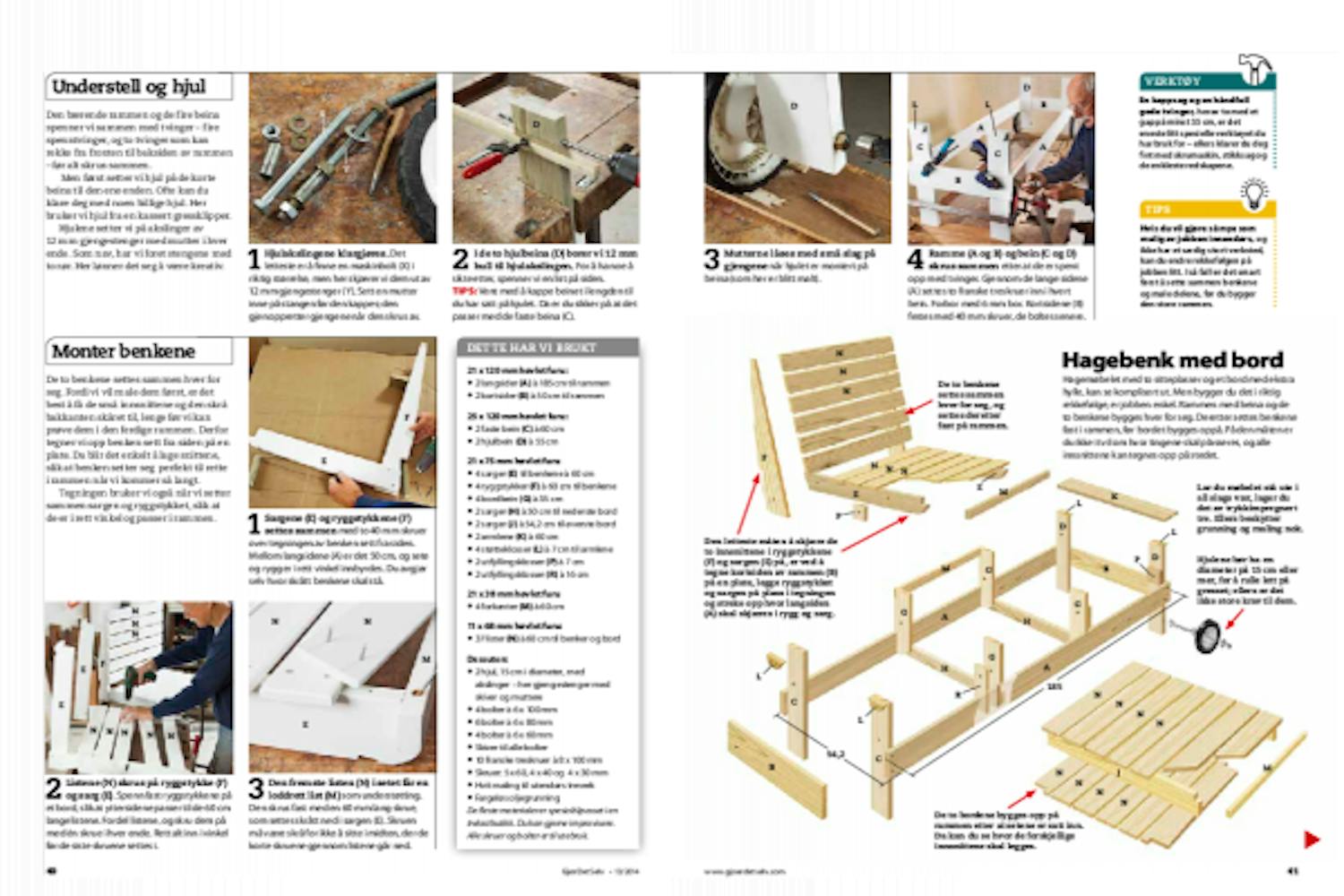 For å få møbelet vårt til å ligne mest mulig på sine svenske forbilder, har vi brukt både trykkimpregnerte og uim-pregnerte materialer, og de dimensjonene du finner i materiallisten og tegningen på de neste sidene er det ikke sikkert du finner i trelastbutikken. I så fall improviserer du - eller får trelasten til å skjære ut delene for deg, slik som vi gjorde med de fleste materialene.