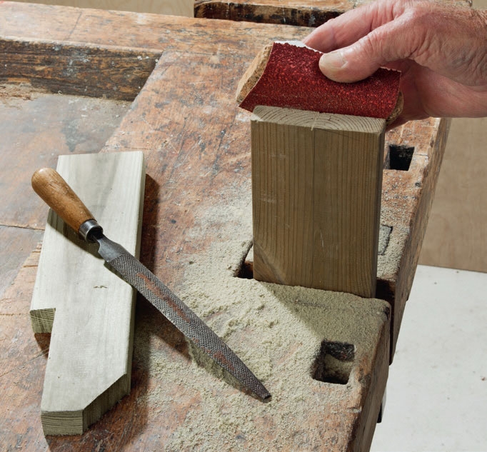 Delene skjæres ut og slipes lett. Du klarer alle snittene med en håndsag, men tverrsnittene går fort og blir mer presise med en kappsag, mens stikksagen er effektiv ved innsnitt. Snittene slipes glatte, evt. etter å ha blitt rettet opp med en rasp.
