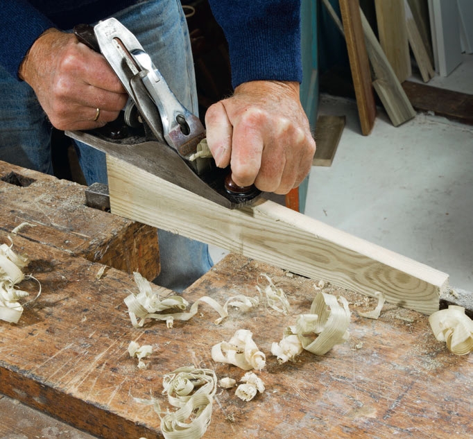 Langsgående sagsnitt glatter vi med en skarp høvel - det er raskere og bedre enn å slipe dem rene. Alle kanter rundes. Da blir de sterkere, og malingen vil også legge seg bedre på den avrundede flaten, slik at den beskytter treet overalt.