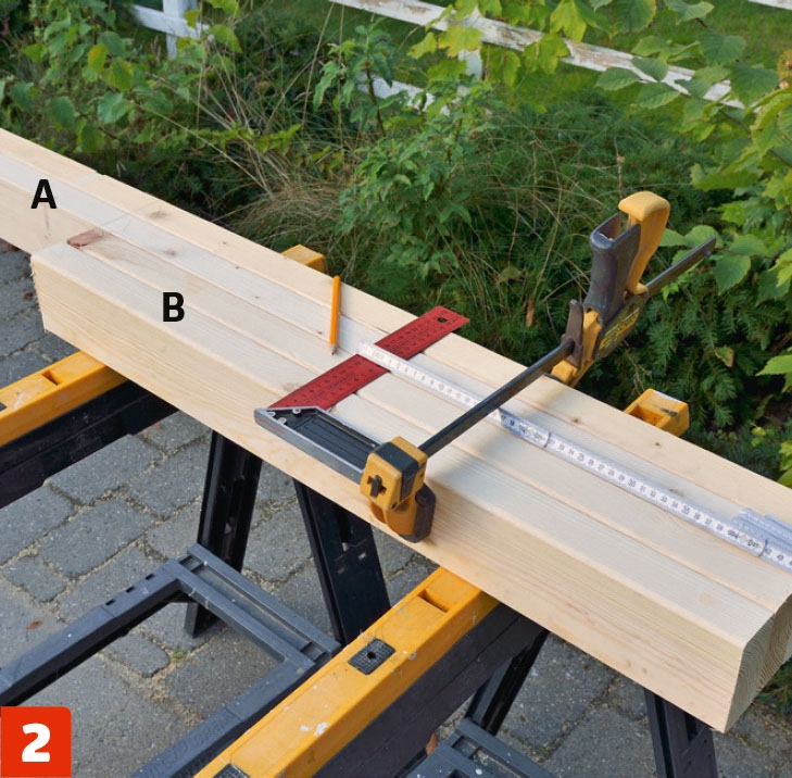 Kapp til de fire beina (A og B), og mål ut og merk opp hvor understøt tingene til underhyllen (C) skal plasseres.