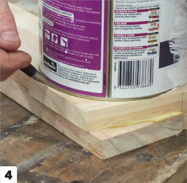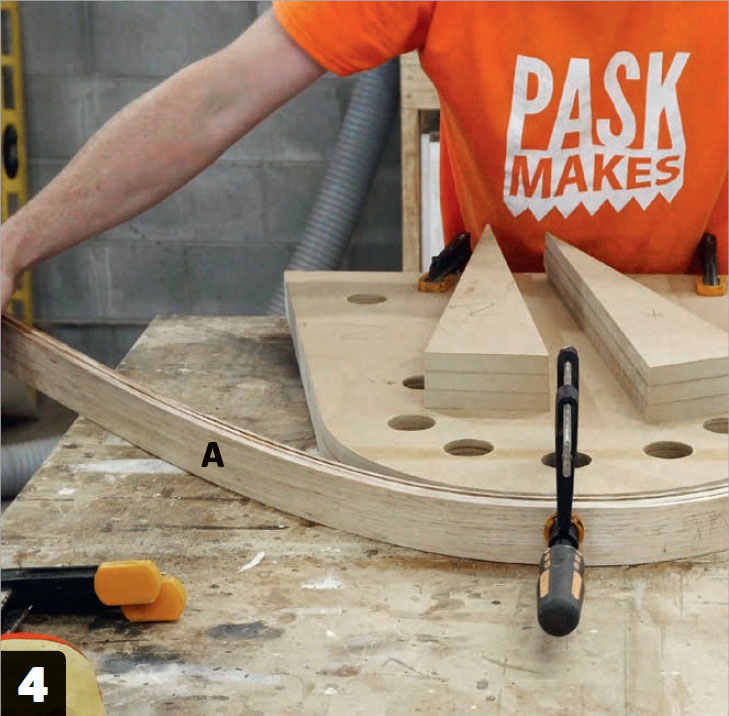 Skru fast en listestump i formens korte ende. Listen, som skal stikke 3-4 centimeter utover kanten, brukes til å støte rygg- og setelistene opp mot når de bøyes i form.