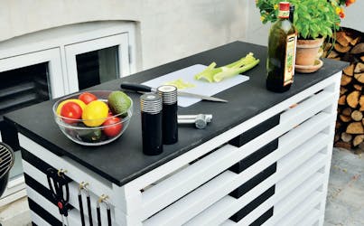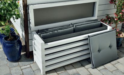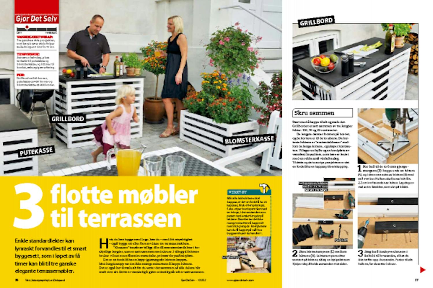 Grillbord ca 500 kroner, putekasse ca 400 kroner og blomsterkasse ca 400 kroner.