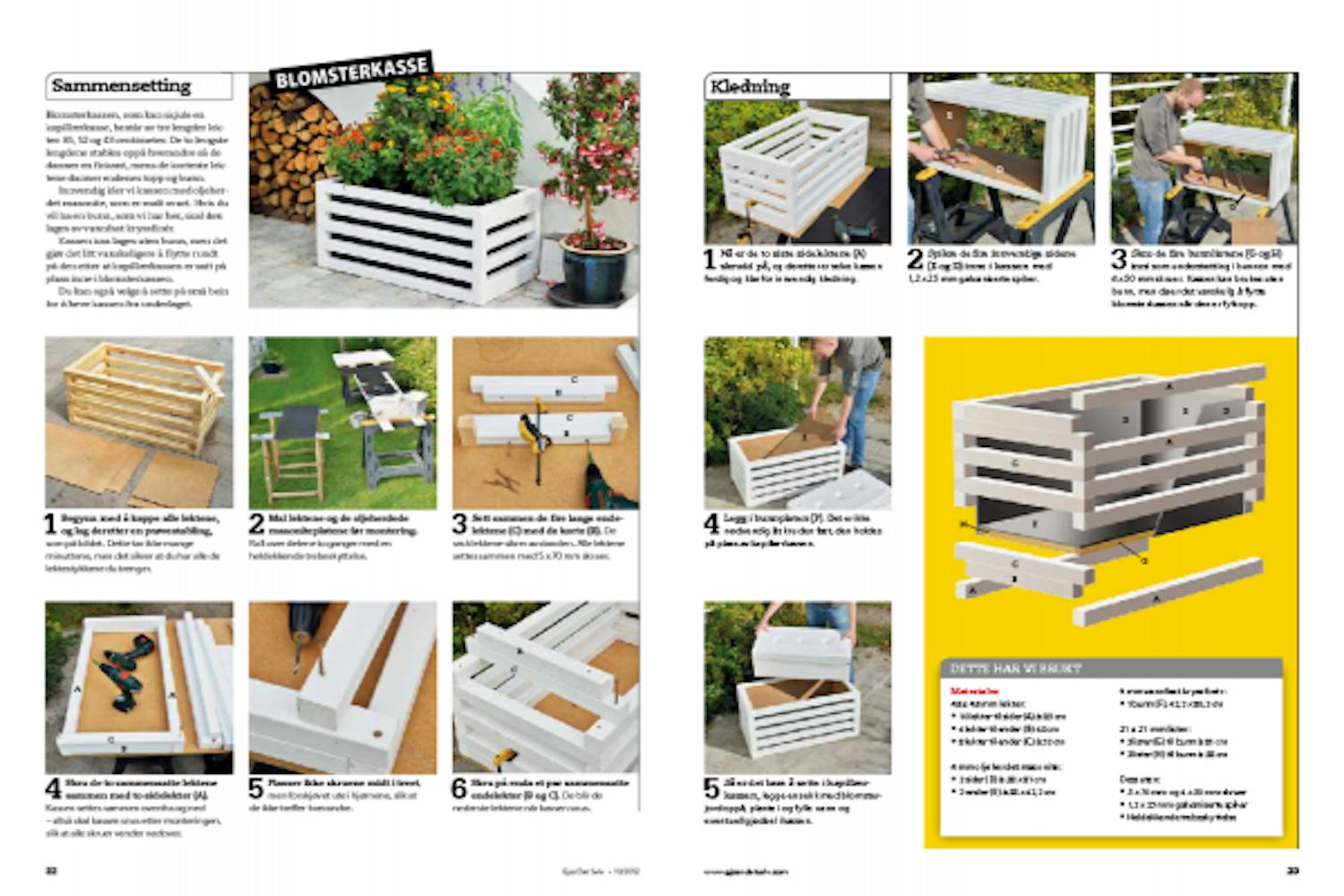 Blomsterkassen, som kan skjule en kapillærkasse, består av tre lengder lekter: 85, 52 og 43 centimeter. De to lengste lengdene stables oppå hverandre så de danner en firkant, mens de korteste lektene danner endenes topp og bunn.