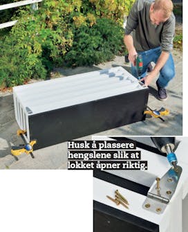 Selve kassen er bygget av fire lengder lekter: 117, 35, 26 og 5 centimeter. Oppå kassen skal du legge en ramme med lokk, som hengsles på kassen.