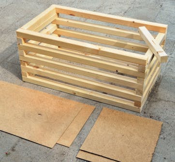 Etterpå skal kassen kles innvendig med kryssfinér, og til slutt skal du lage bein av små lektestumper.