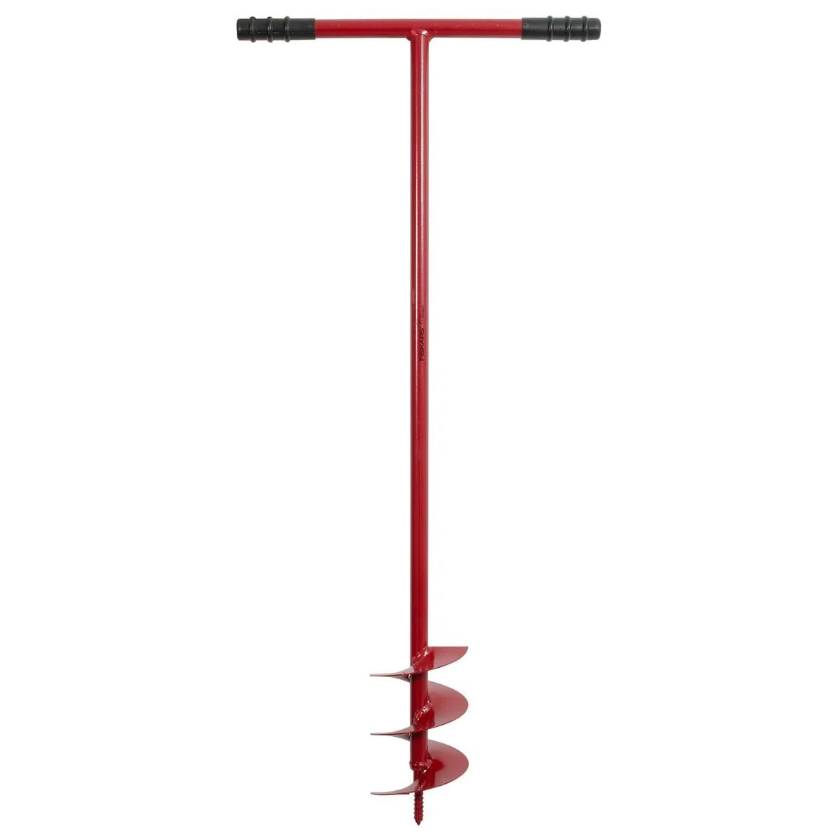 Det manuelle jordboret jobber seg lett ned i hagejord – også i leirejord. Standardstørrelsene er 100, 120 eller 150 mm diameter på et 110 cm skaft, og det passer til rundstokker og stolper i 100 x 100 mm (4 tommer) eller 120 x 120 mm (5 tommer).