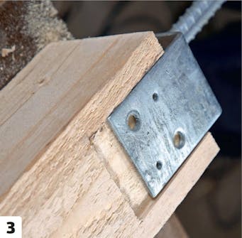 Sag til skråstiveren med et 45° snitt i begge ender. Begynn med å holde opp skråstiveren der den skal sitte, og marker vinkelen på snittet.