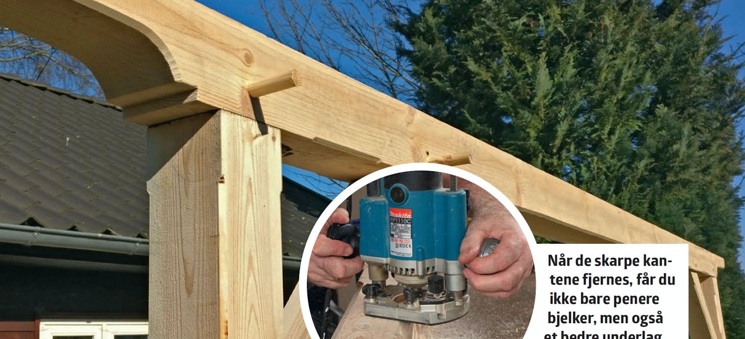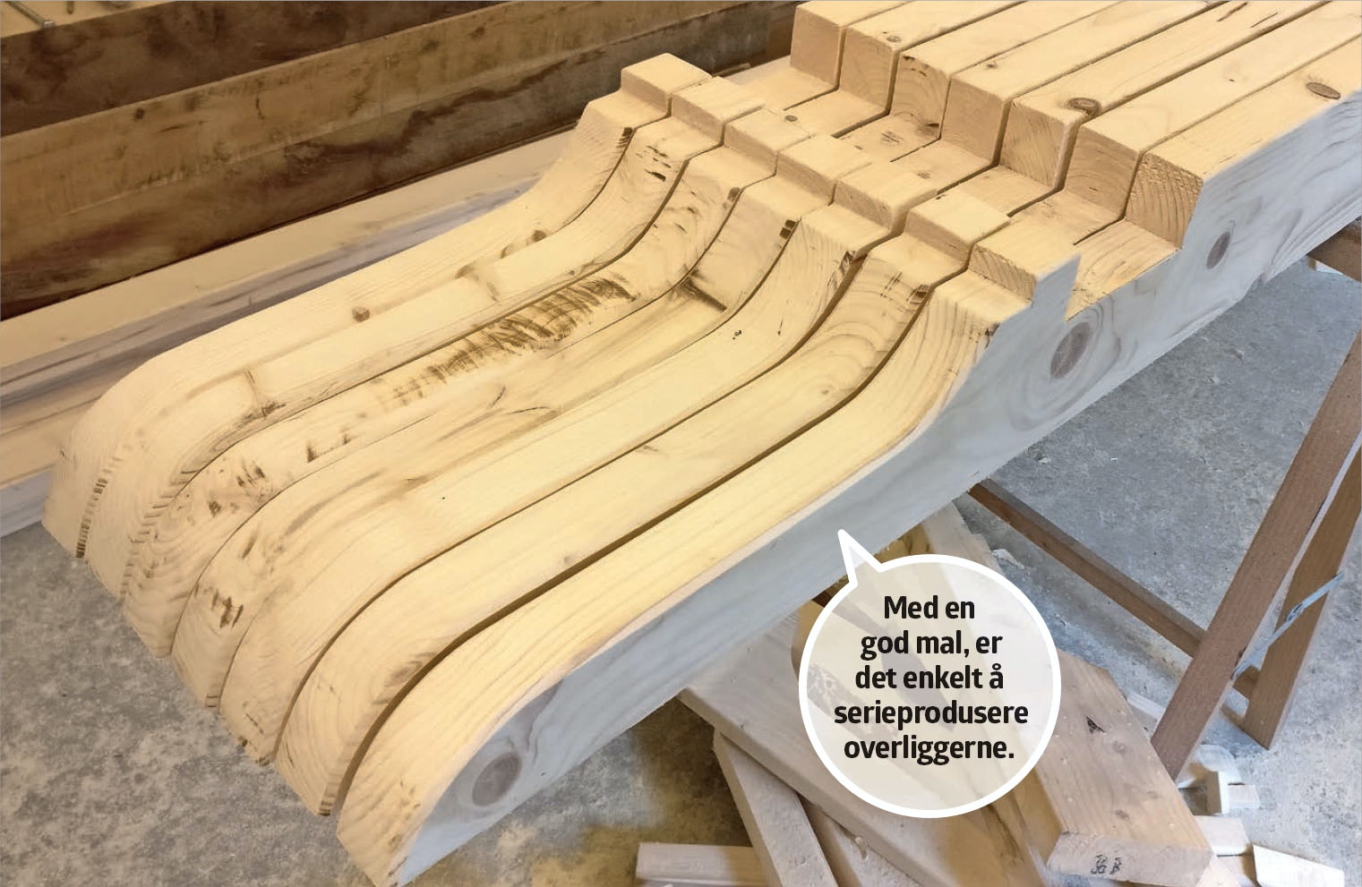 Rent konstruksjonsmessig er det ingen grunn til å lage snirklete utskjæringer i overliggerne. De kunne slik sett bare ha vært som de var. Men det ser unektelig mer elegant ut hvis de kraftige stolpene blir slanket litt. Om det i tillegg skal være mer eller mindre profiler og pynt, er helt opp til deg.