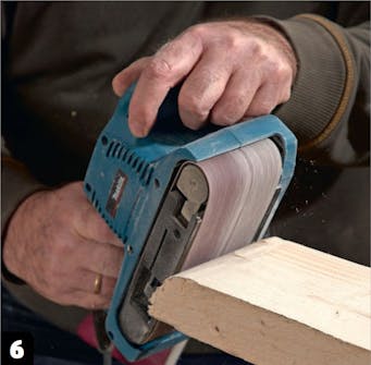 Det er alltid en god idé å avfase (altså avrunde) stolpekantene 1-2 mm. Da fjerner du den skarpe kanten som trebeskyttelse ikke hefter på, og som ofte inneholder ubehagelige fliser.