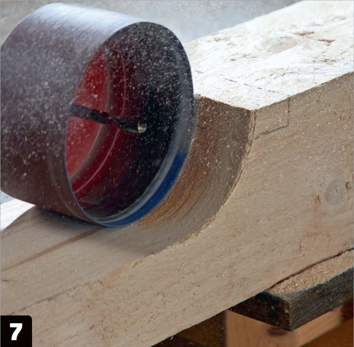 Lag det rette snittet med stikksagen. Den utadgående krummingen fikser stikksagen også. Dog krever det et ekstra langt grovtannet stikksagblad for å kunne sage gjennom den 10 cm tykke stolpen.