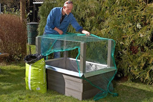 Bærbusker som solbær, rips og jordbær er lette å dekke til med et nett, hvis du har plantene i en plantekasse. La for eksempel hjørnestolpene være høye, og spenn ut en snor mellom dem, slik at nettet ikke ligger helt tett oppå plantene.