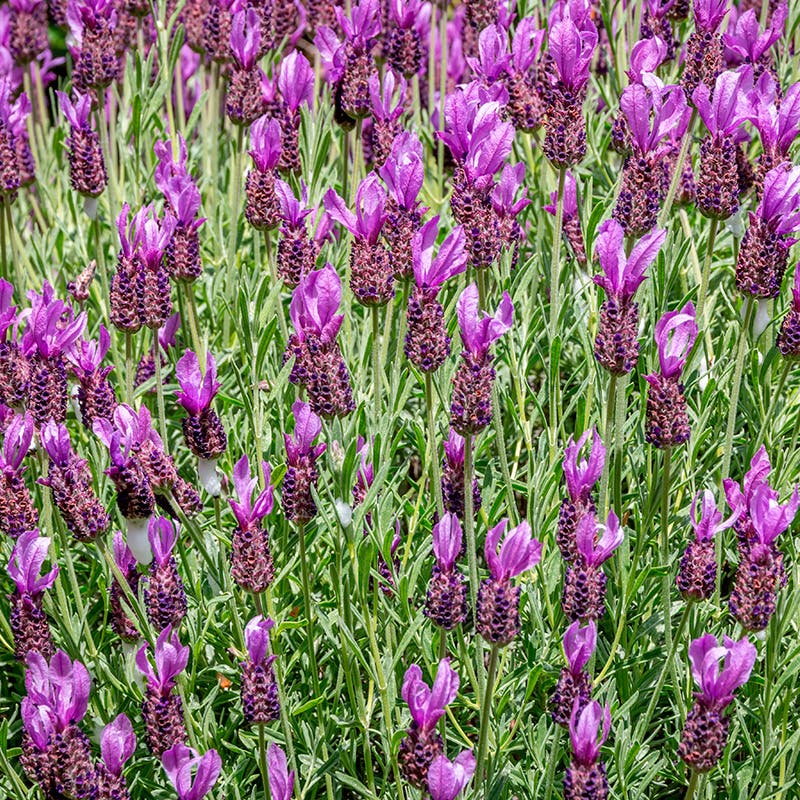 “Lavendula stoechas”, med sine karakteristiske blomster, som ligner sommerfugler.