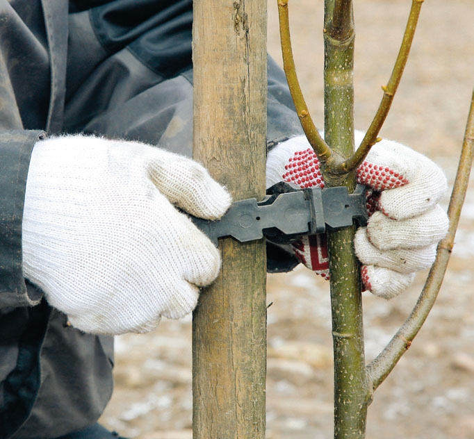 Fyll jord i hullet, og plassér treet. Vær klar over at treet skal settes et par cm dypere enn det har stått før (sjekk barken). Dekk med jord som du trykker til med foten.