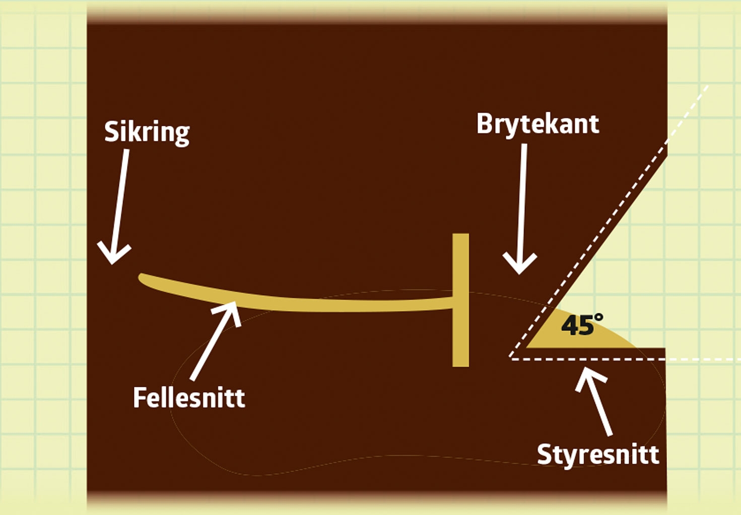 - Styresnitt: Lag en kile, som bestemmer retningen treet faller.