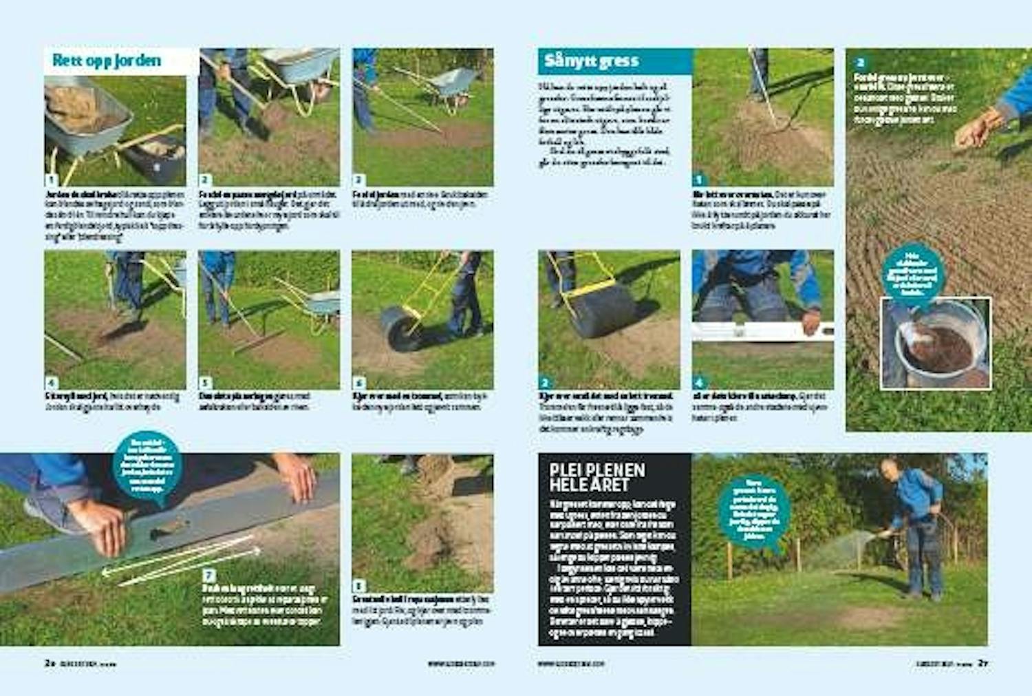 Fordel gressfrø jevnt over området. Disse gressfrøene er behandlet med gjødsel. Bruker du vanlige gressfrø, kan du med fordel gjødsle jorden lett.
