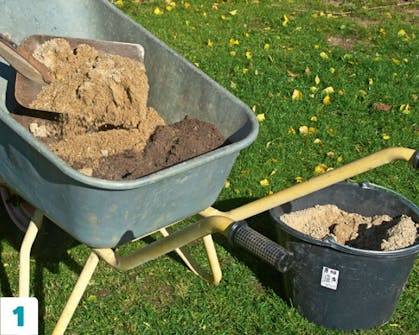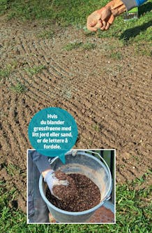 Jorden du skal bruke til å rette opp plenen kan blandes av hagejord og sand, som blandes én til én. Til mindre hull kan du kjøpe en ferdigblandet jord, typisk kalt “toppdressing” eller “plendressing”.