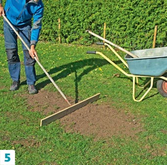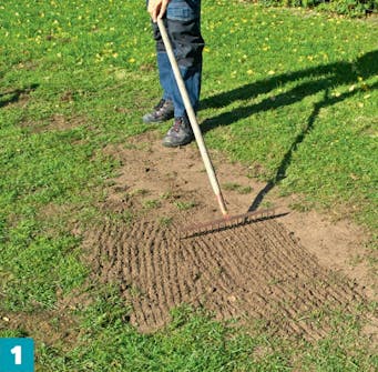 Riv lett over overflaten. Det er kun overflaten som skal løsnes. Du skal passe på ikke å flytte rundt på jorden du akkurat har brukt krefter på å planere.