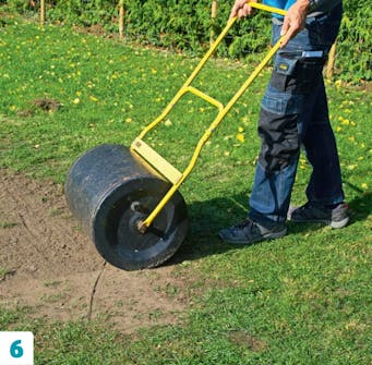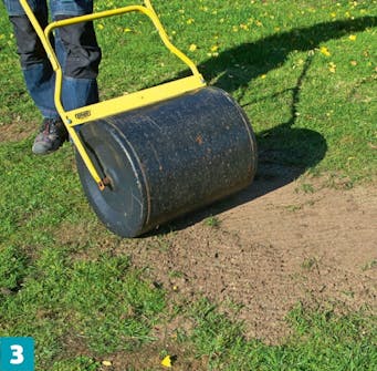 Kjør over området med en lett trommel. Trommelen får frøene til å ligge fast, så de ikke blåser vekk eller renner sammen hvis det kommer en kraftig regnbyge.