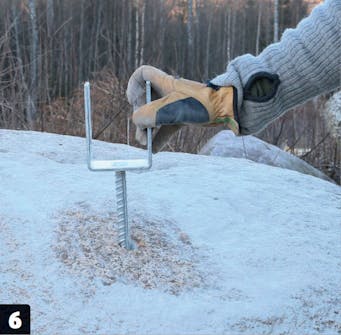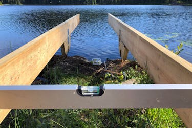 Ettersom hullet er 6 mm større enn foten på stolpeskoen, er det enkelt å plassere og justere skoen i hullet. Bruk eventuelt et vater til å få den i lodd.