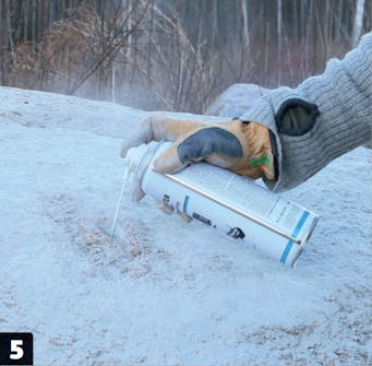 Hullet må blåses rent for støv for at forankringsmassen skal kunne få feste i steinen. Har du en ikke luftkompressor i nærheten, er trykkluft på boks et glimrende alternativ.