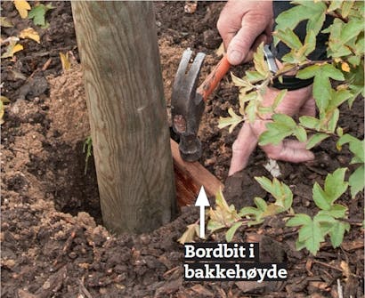 For å sikre stabilitet, graver vi stolpen en meter ned i bakken. Kan du ikke komme til for å gjøre det, må du støpe et fundament som holder den.