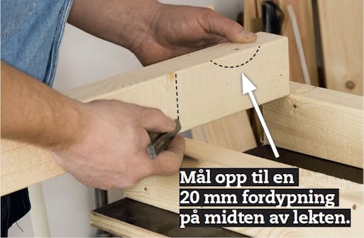 I toppen av støpeformen skal det brukes fem korte lektebiter. De sages i en vinkel på 30 grader. Etterpå skal de skrus fast på forskalingsplaten.