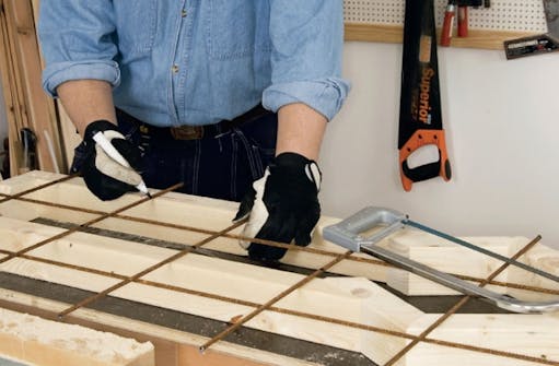 Betongen skal forsterkes med armering. Klipp ut eller sag til et stykke som passer til støpeformen.