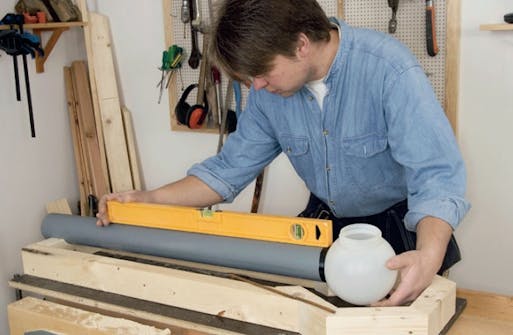 Etter et døgn eller to fjernes plastlaget, røret og kuppelen, før støpeformen adskilles. Slip over kantene så de blir runde. Det styrker kantene.