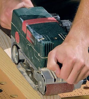Det er sjelden rutineoppgavene som blir vanskelige og tar lengre tid enn planlagt - det er de uvanlige utfordringene. I dette tilfellet er det de lange buene som bærer taket, og de korte buede skråsperrene, som stiver av konstruksjonen, som kan gi problemer, og som du bør sette av litt ekstra tid til. En god båndsliper kan gjør det enklere.